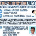 川崎医科大学附属病院、厚生労働省慢性疼痛診療システム均てん化事業中国地区主催の令和7年度慢性痛研修会「日常診療に活かす認知行動療法の視点」にWeb参加しました。西江宏之先生(川崎医科大学先端腫瘍医学)は「原因不明の痛みに…