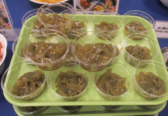 2泊目に宿泊した東横イン博多口駅前の朝食で「おきゅうと」をいただきました。海藻のエゴノリとイギスを混ぜ併せて成型した博多の朝食の定番です。見た目はこんにゃくと似ていて、ツルっとしているところもそっくりですが、もっと軟らかくて舌でもちぎれます。