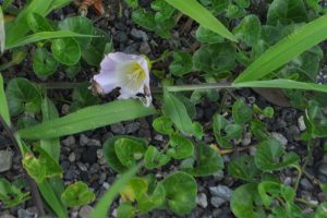 ヒルガオ科ヒルガオ属ハマヒルガオ ハワイ・オアフ島のマカプー岬で咲いていました。その名の通り、海岸地帯で棲息し、丸い葉をつけます。