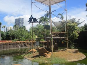 ホノルル動物園でもかなり目立つ動物です。スマトラ島とマレー半島の森林に生息し、オスには目立つのど袋があります。