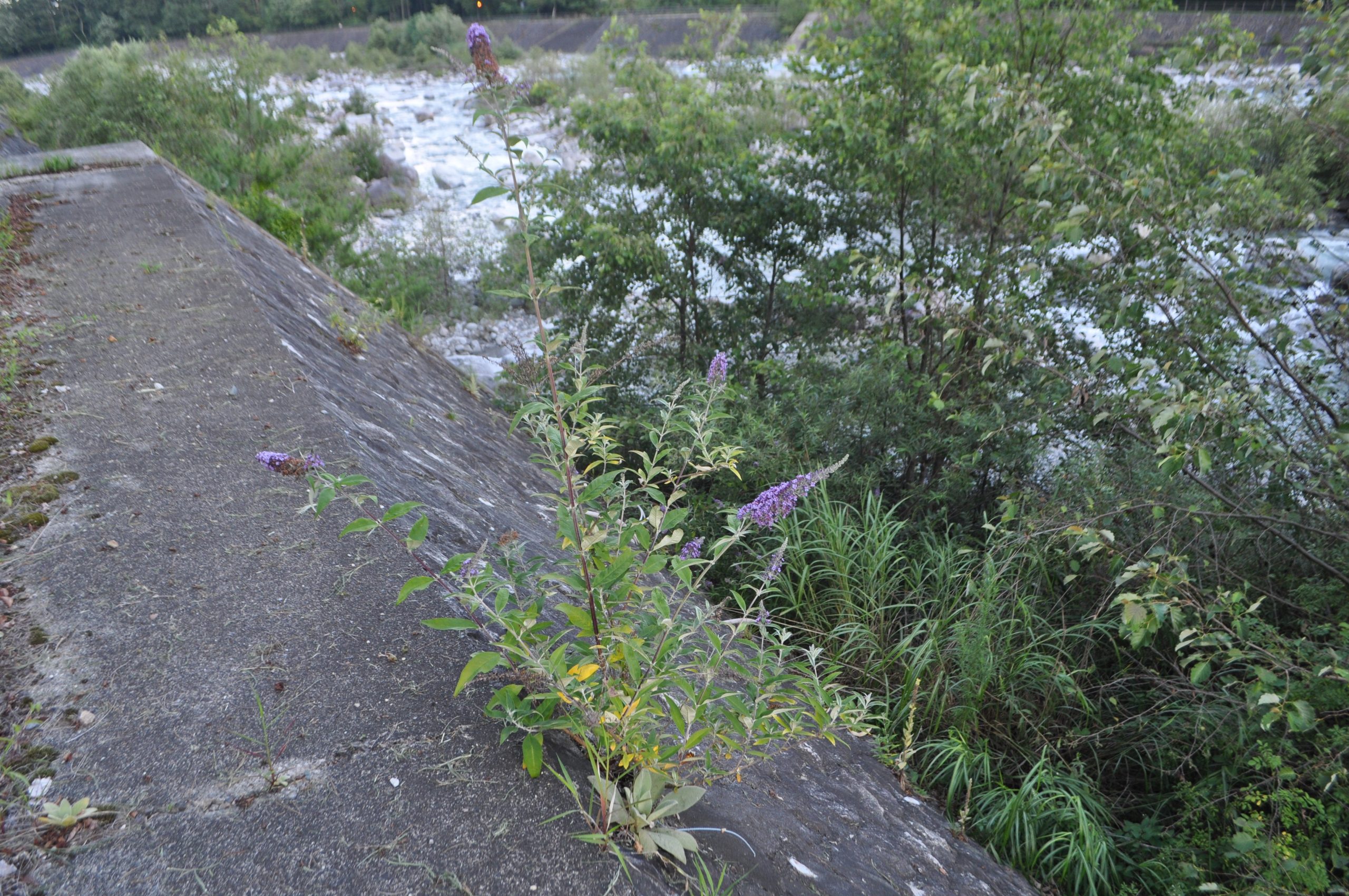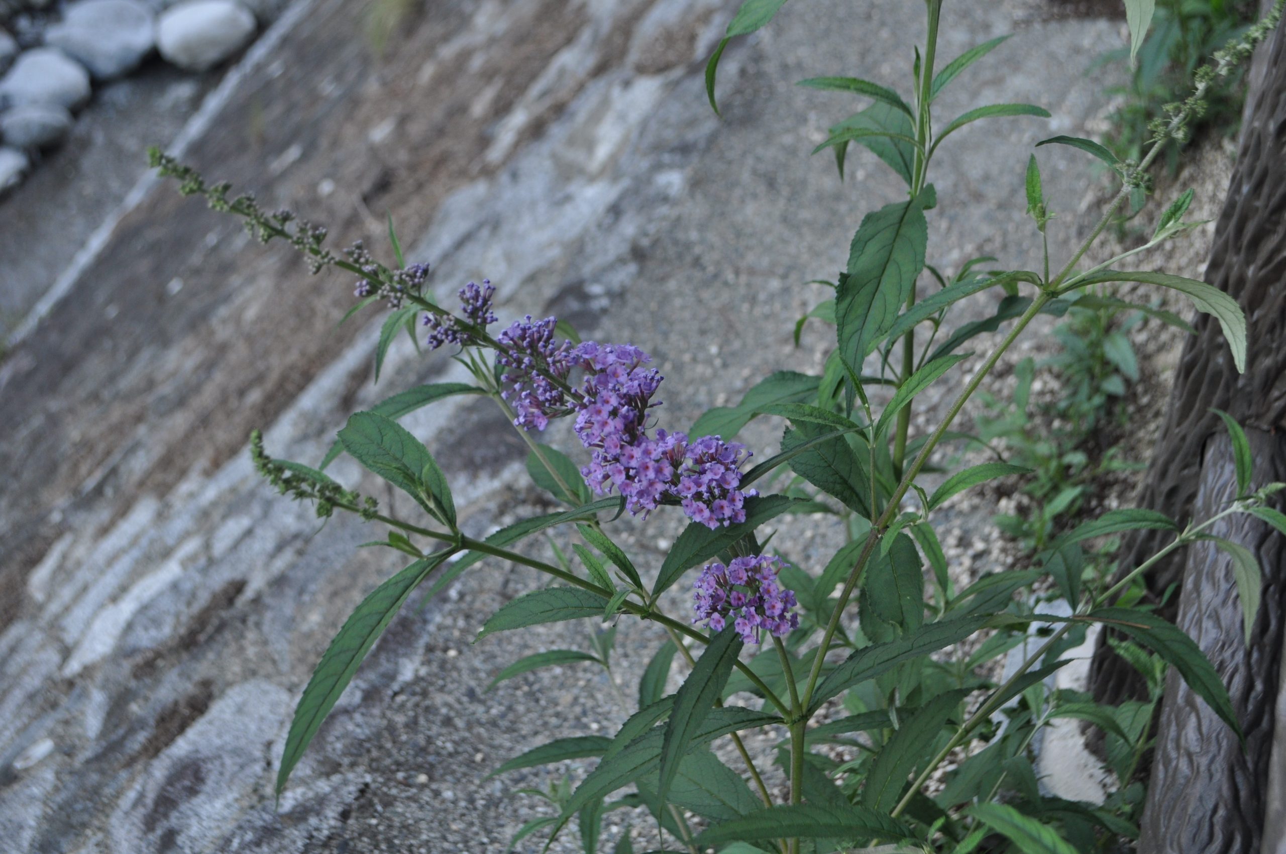 大田切川の堤防の上で咲いていました 。4枚の花びらを持つ水色の多数の小さな花が円柱状に集まっています。房藤空木の名は花が藤の花に似ていて、葉が空木のように対生していることからこの名が付きました。バタフライフィッシュという別名もあり、よい香りがして蝶々が集まるそうです