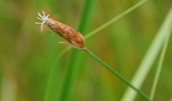 宝塚市丸山湿原で見かけました。オオハリイの一種で小穂が長細いことが特徴です。拡大写真では刺針状花被片が1本だけ目立っています。