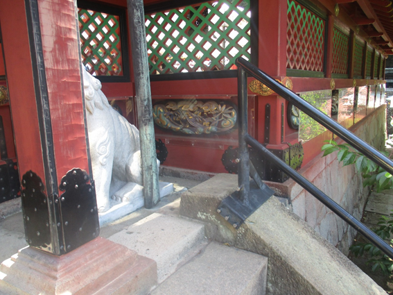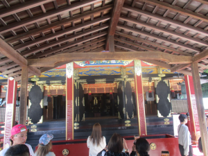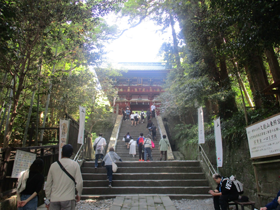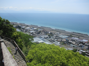 日本平を下山し、駿河湾との間の狭い海岸線に沿って車を走らせました。イチゴ園が立ち並ぶ田園地帯を走っていると、右手の崖の上に久能山東照宮が見えました。999段の石段を上ると、ようやく本殿や徳川家康廟がある核心部分に辿り着きました。鳥居があるので神社とわかりますが、久能山とお寺のような名称です。これは飛鳥時代に前身の久能寺が建てられ、武田信玄が久能城に変え、家康死後に東照宮と変わったからです。