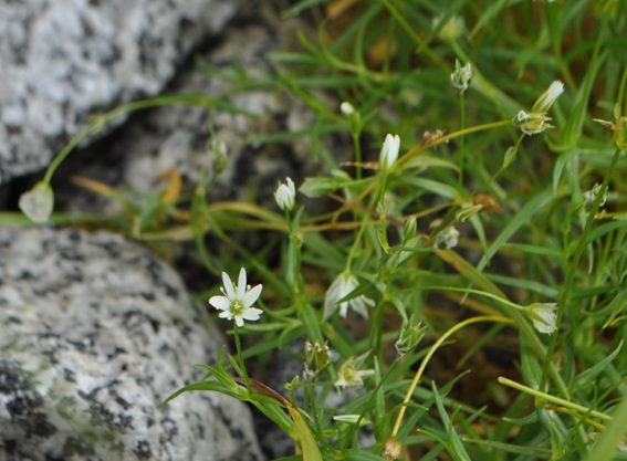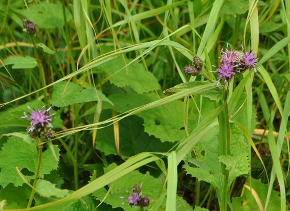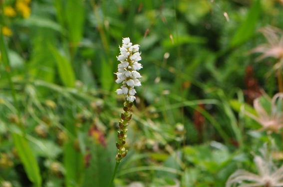 辺り一面に高山植物が咲いていて、ミソガワソウ、オヤマリンドウ、ムカゴトラノオ、ミヤマゼンコ、ハクサンボウフウ、サクライウズ、エゾシオガマ、ヤマハハコ、クロトウヒレン、イワツメクサなどを見かけました。
