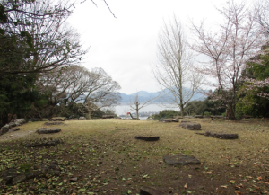 桜が満開となった週末に水路の町、近江八幡を訪ねました。うかつなことに雨予報だったことに気づかず、新快速に乗って早朝に近江八幡駅に着きました。外は冷たい雨空で水路も見えないため、方針転換し、隣駅の安土駅まで移動し、安土城址を目指しました。ラッキーなことに移動に時間がかかっているうちに雨がやみ、晴れ間が見えてきました。 安土駅から安土城までは徒歩で往復60分、城址内を一巡するのに60分かかりました。