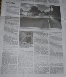 ニューヨーク近郊のロングアイランドの住人であるケンプ一家が自宅の敷地に芝生を敷き詰めず、トウワタなどの雑草や野生の木が生い茂るようにしています。このおかげで大雨の際に周囲の家は敷地が水浸しになったにもかかわらずケンプ家は被害を免れました。芝と比べて天然の草や木は根を深く張り、保水性が高いからです。また、多種類の昆虫が集まり、生物の多様性が見られます。
