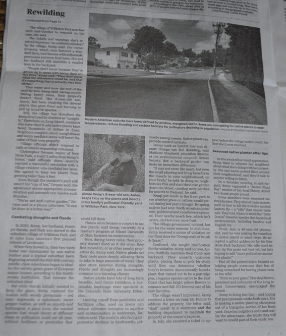 しかし、芝の庭と比べて見た目が悪いため、数千ドルの罰金が行政から請求されています。当局の中にはケンプ家を擁護する人もいて、周辺にも敷地を野生化する人が出始めています。