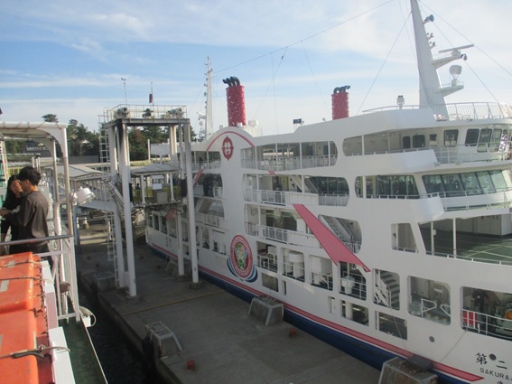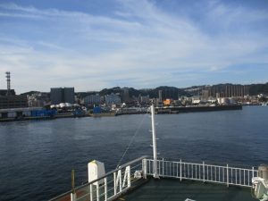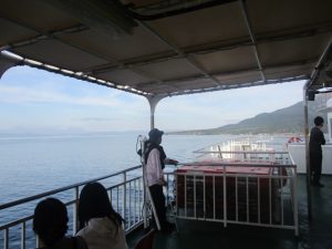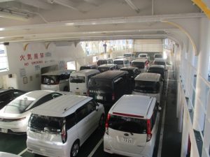 大隅半島から対岸の薩摩半島にある鹿児島市まで行こうとすると陸路では2時間近くかかります。しかし、フェリーに乗るとたった15分で渡れます。フェリーに乗るのも簡単で、フェリー乗り場の手前のゲートを車で通過する際に支払いを済ませ、そのまま船内まで車で乗り付けられます。