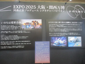 EXPO’70 パビリオンでシグネチャーパビリオン「いのちをめぐる冒険」のコンセプトや映像が展示されてました。小学4年生の春休みに70年万博を訪れた河森少年は、3日間で8割のパビリオンを回りました。すごいです。