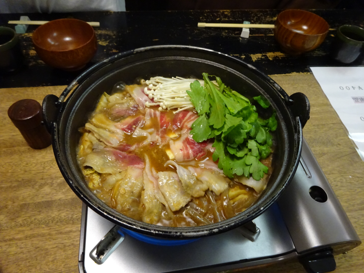 兵庫県で牡丹鍋を食べてきました。11月15日から狩猟解禁の為、これからの時期がシーズンです。自家製味噌でお野菜と一緒にいただきました。