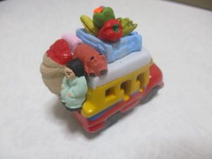 大阪・関西万博で買ったお土産はコロンビアのものだけで、部屋に飾って眺めています。チーバの屋根には荷物を載せられるようになっていますが、人や家畜も乗るようです。