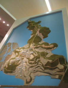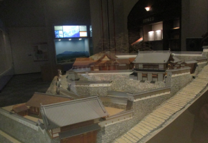 安土城は建築開始から10年もたたずに消失したため、どのような姿の城だったのかもわかっていません。滋賀県が発掘調査を続けていて、その内容が詳しく展示されていました。