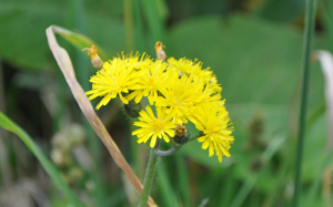 キク科ヤナギタンポポ属ミヤマコウゾリナ 上川郡美瑛町の望岳台で咲いていました。コウゾリナより背丈が低い高山植物です。コウゾリナの仲間には、高地に生えるカンチコウゾリナや北海道アポイ岳の固有種であるエゾノコウゾリナがいます。