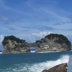 和歌山県白浜町を代表する名所で、この岩間に沈む夕日が有名だそうです。この岩間の形が「円月形」だそうですが、円月形がどのような形かわかりません。ただの円形のように見えます。 「月形」という言葉もあるようですが、こちらも半円…