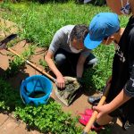 生き物に触れることで自然を学びます。 どろだらけになって魚を探しました。