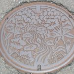 乗鞍岳への行き返りに木祖村のやぶはら高原を通り抜けました。ここは木曽川の原流域で、村名もこれにちなんで付けられました。マンホールの蓋には中央に山間を流れる木曽川が描かれています。川岸には村の花、リンドウが咲き、山には村の…