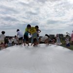 安満遺跡公園のトランポリン。子供のパラダイスです☆汗をかきながらも、必死に飛び続けます。