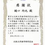 院長が不定愁訴をテーマに講演を行い感謝状を頂きました。