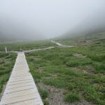 バス停の名となった畳平は恵比寿岳、富士見岳、摩利支天岳に囲まれた平坦な谷間です。一面に生える高山植物が傷まないように、木道が整備されています。