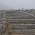カッパを着て乗鞍岳に向かって雨の中を登り始めました。少し上ると頂上の到着し、それ以上高い場所は見当たりません。ガスの中で登り口を間違って魔王岳(2764m)に登っていたのです。元の道を引き返して乗鞍連峰の主峰である剣ヶ峰…
