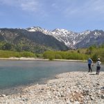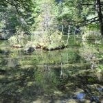 大正池から見上げた穂高連峰です。中央奥に日本第3の高峰、奥穂高岳が聳え、右手に前穂高岳、明神岳と続き、左手にはジャンダルム、間ノ岳、西穂高岳と続きます。と言っても、私は登ったことがなく、この景色を見るのもおそらく初めてで…