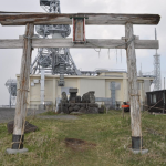 美ヶ原の山頂からは御嶽山がきれいに見えます。昔から御嶽山を拝む場所となっていたようで、山頂に奥の院が建っていました。石造りの小さな祠の周りには天狗や不動明王の石像が並んでいました。