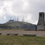 ビーナスラインからそれて美ヶ原に向かうとすぐに道路は行き止まりになっていました。牧場の中を1時間ほど歩くと山頂に着きました。本日の宿はこの山頂にありました。いずれの山でも山頂にテントを張って泊まったことは一度もなく、山頂…