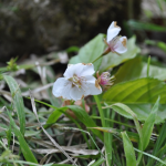 バラ科バラ属サクラバラ 宝塚市丸山湿原の近くで咲いていました。サクラの花に似たバラの花で、花びらのふちが桜色となります。 バラ科へ戻る 雑草図鑑3へ戻る