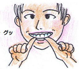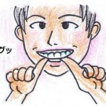 ①ペリセラジェル(歯磨き剤)をつけたデンタル・フロス(糸楊枝)で歯間部の歯垢を取ります。