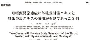 口の中の気持ち悪さと一緒にのどの気持ち悪さも訴える患者さんを見かけます。咽喉頭異常瘀感症の原因には胃食道逆流症や咬頭アレルギーなどがありますが、全く原因が見当たらないものもあります。そのような本態性咽喉頭異常感症の中には「奔豚病」によって生じているものもあるようです。