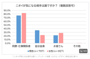 香川昌彦氏(社会保険労務士法人こころ社労士事務所代表)の講演です。臭いの強い人が職場にいると職場の労働環境が悪化します。そのことを誰がどのように本人に伝えるのかは悩ましい問題です。この点を詳しく分析して解説されました。本人に伝えるのは一番身近な同僚かなとも思いますが、人間関係が壊れるリスクがあるとのことです。他に上司、産業医、人事担当者が伝えるという案もあります。