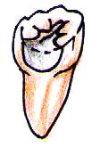 隣同士の歯が接触する部分をコンタクトポイントといいます。実はこの部分はむし歯ができやすい部分です。さらに都合が悪いことに、この部分を直接観察することができないため、むし歯ができてもかなり大きくならない限りむし歯の穴が見えることはありません。咬合面や側面には穴が開いていないからです。