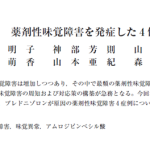 65歳以上の高齢者では、薬剤の副作用によるものが味覚障害の原因として一番多くなっています。薬剤性味覚障害の発症率は1.9~24.4%で、200種類以上の薬剤が味覚障害を引き起こすとされています。薬剤性味覚障害の発症機序は…
