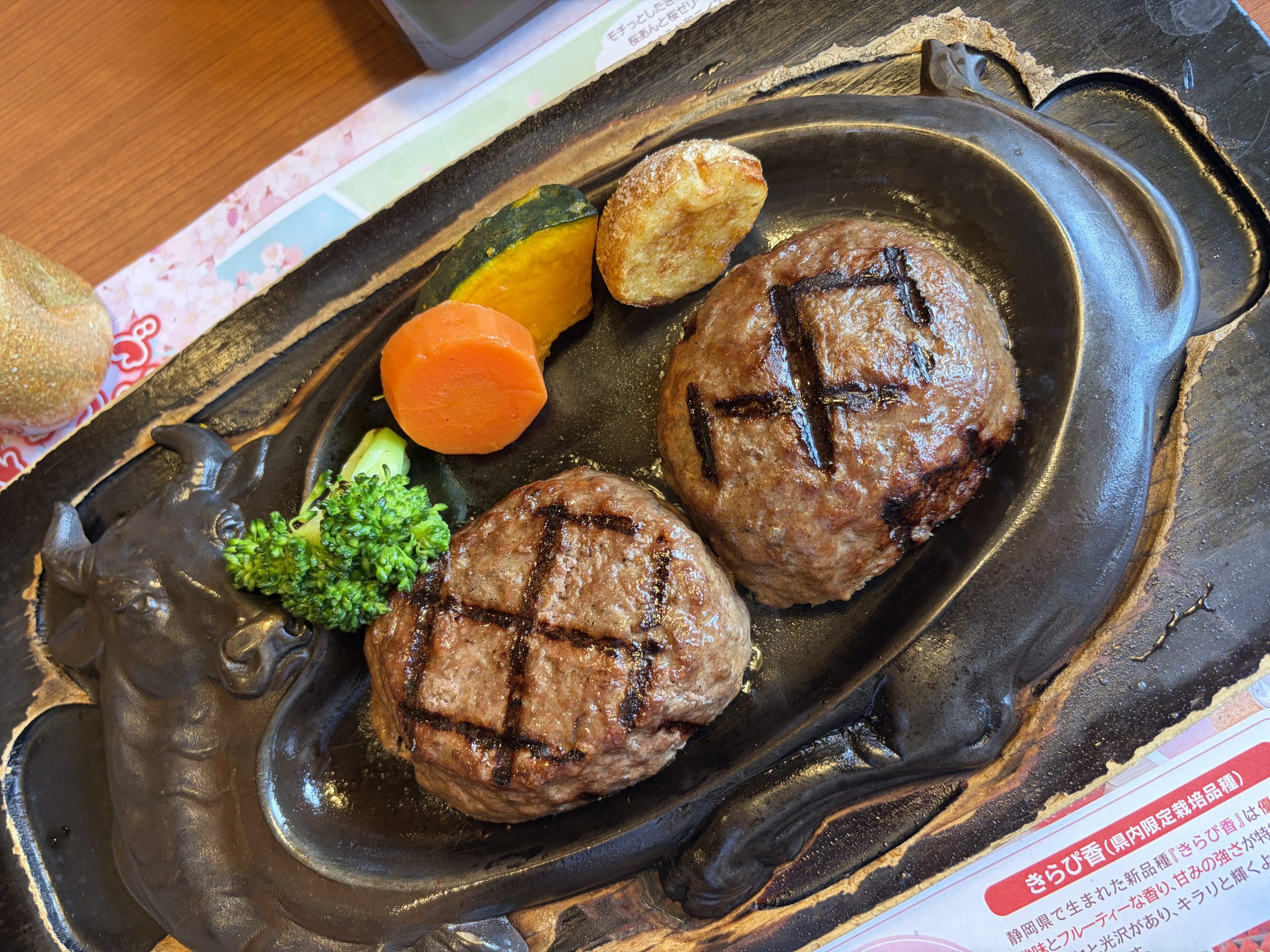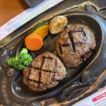 休憩中にこのハンバーグ店の話題をしてから二人目がご来店!肉~~肉々しい王道のハンバーグ~最後に仕上げに目の前でじゅう~~と焼き目をつけてくれるパフォーマンス付きです♡