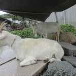 廃校となった池田市の旧細河小学校の近くで3頭のヤギがいました。手前のヤギは熱心に草を食んでいました。隣がJAですが、関係あるのでしょうか。
