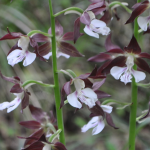 ラン科エビネ属エビネ 箕面の山中で咲いていました。白い花と後ろの臙脂色の花の二重構造になっているように見える複雑な花です。後ろの臙脂色の花は側花弁と咢片で、手前の白い花のように見えるものは唇弁です。ということで、やはり二…