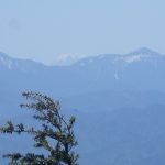 三角点がある恵那山山頂からは何も見えませんが、山頂付近をうろうろしてみると眺めがよい場所が幾つかありました。加賀の白山も間近に見え、御嶽山、乗鞍岳、穂高連峰、空木岳、南アルプスも見渡せました。南アルプスの向こうには富士山…