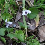 岐阜県大日ヶ岳の登山道で咲いていました。ニョイスミレの高山型です。葉が丸く、下唇の濃紫色の斑が目立ちます。