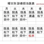 2024年4月より診療体制が変わりまた。※曜日別担当医表の黒字は男性ドクター、赤字は女性ドクターです