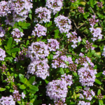 シソ科イブキジャコウソウ属クリーピングタイム 大野市の空き地で咲いていました。タイムはハーブとして栽培されますが、このタイムは値を張って広がるため、地面の土がむき出しにならないようにと植えられます。この空き地に雑草が生え…