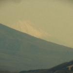 左端に蓼科山、その右肩に八ヶ岳連峰、右に南アルプスが見えますが、霧ヶ峰の富士見台よりも距離が離れたため、富士山はわかりにくくなりました。八ヶ岳の右端の三ツ頭に富士山が重なって見えていました。手前にある三ツ頭よりも奥にある…