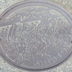 大学1年の夏合宿は大雪山の縦走でした。夜行列車と青函連絡船を乗り継いで3日目にようやく新得駅に到着し、そこからトムラウシ山に向かいました。マンホールの蓋にはピッケルを持つ登山者が2人描かれています。