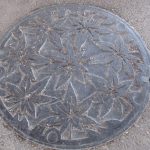 廿日市市に編入された旧宮島町のマンホールの蓋には、町の木「モミジ」の葉が一面に広がっています。秋が深まると厳島神社の裏手の紅葉谷公園は種々のモミジで真っ赤に染まります。