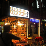 私の知識が不足していて実は高級な海老は高いものなのかもしれませんが、たった1本の串が1000円もしました。これから焼こうとする串が屋台の壁2面全体にかかっていました。焼き上がる外国人観光客が前で待っていて、飛ぶように売れ…
