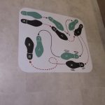 キューバのブースの床にダンスのステップが描かれていました。この通りに足を動かしていくと、サルサが踊れるのでしょうか。